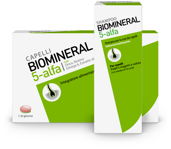 BIOMINERAL 5-ALFAè un integratore alimentare di Zinco e Biotina con estratto di Tè verde e Omega 6.