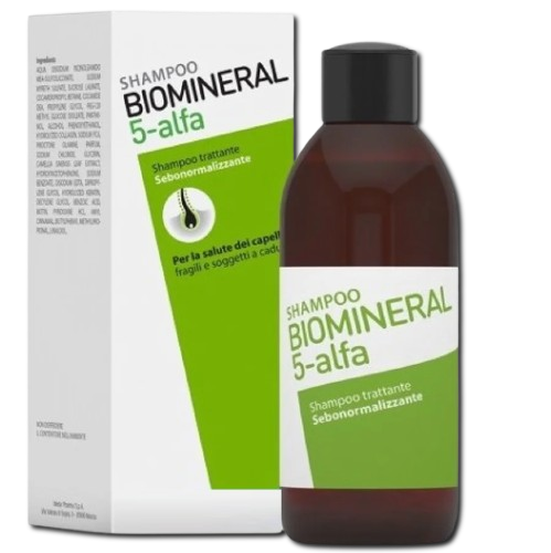 Biomineral 5-Alfa Shampoo è uno shampoo specifico per il trattamento della seborrea del cuoio capelluto e della salute dei capelli fragili e soggetti a caduta.
