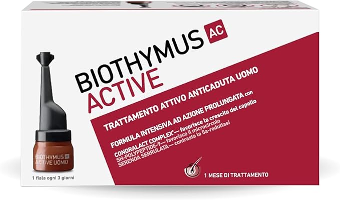 La formula di Biothymus Active Fiale unisce ingredienti specifici per il ciclo vitale del capello e mediatori di assorbimento che ne prolungano la loro attività.